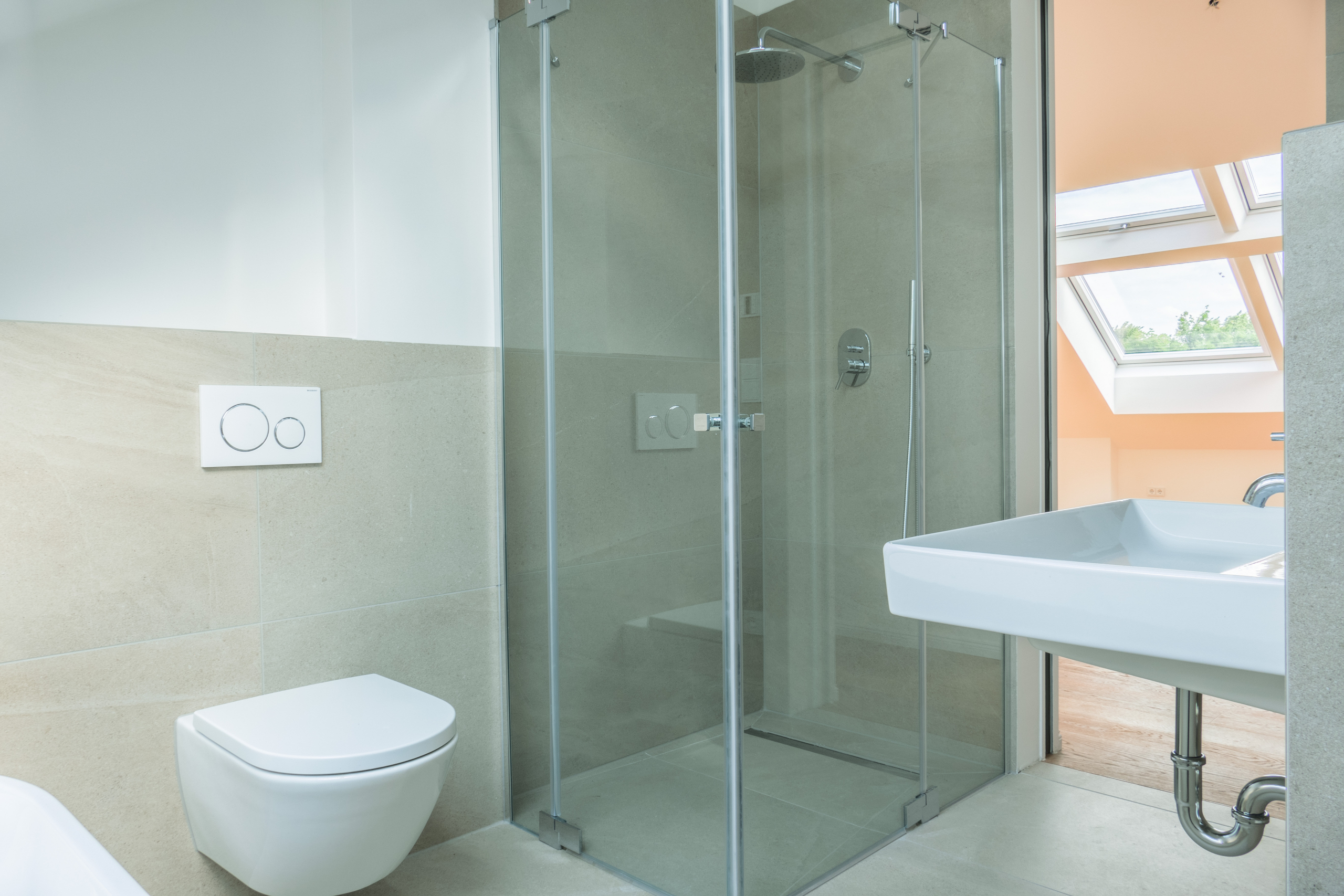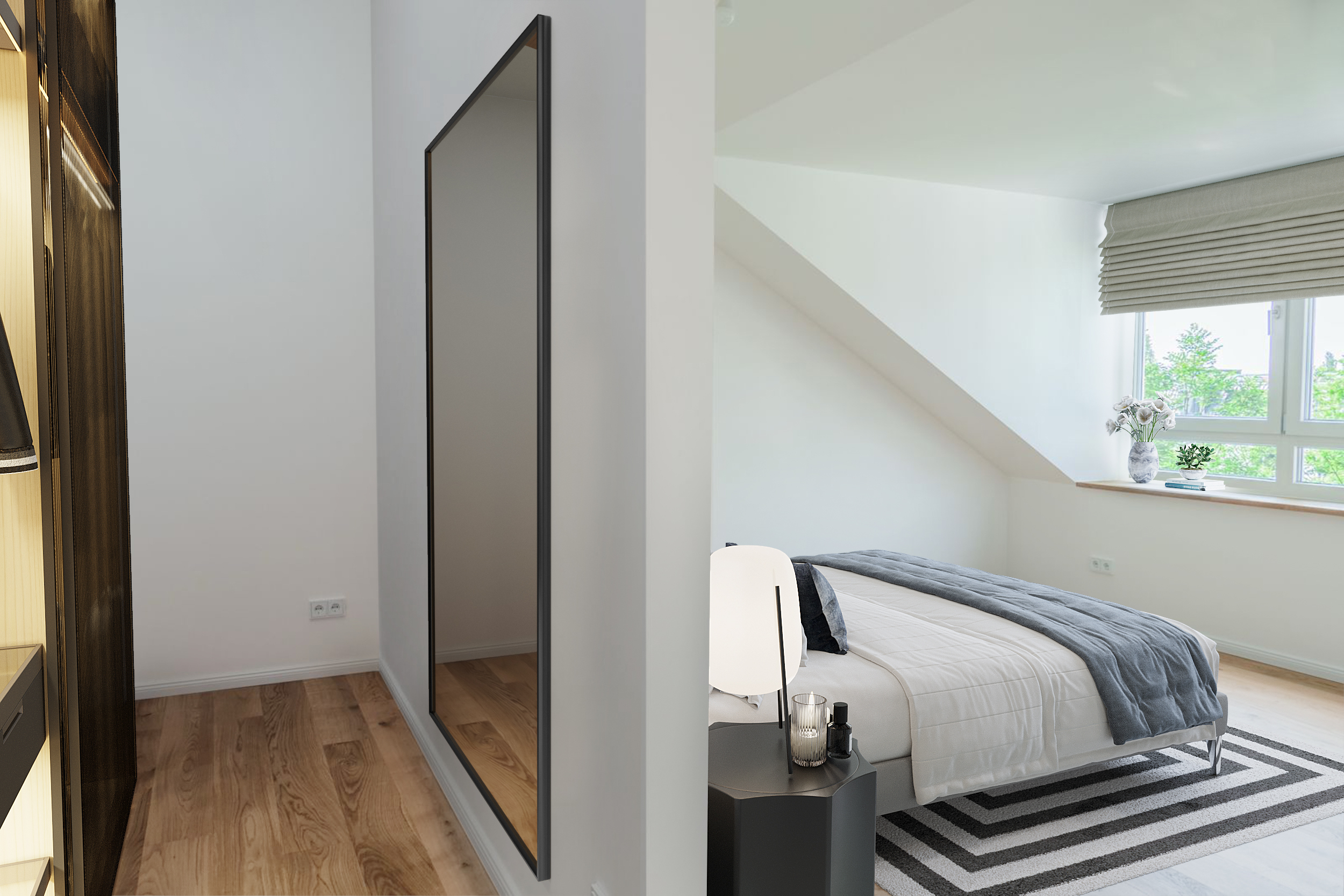 Ein Drittes Zimmer, in dem auch die Wohnungsanschlüsse verbaut sind, kann zudem als Arbeitszimmer genutzt werden. Die Wohnung verfügt über ein herrliches Masterbad sowie ein Gäste-WC. Das Masterbad, welches direkt neben dem Schlafzimmer liegt, hat neben der bodentiefen Rainshower-Dusche eine freistehende Badewanne, die direkt unter einem Dachfenster liegt und maximale Entspannung bietet.