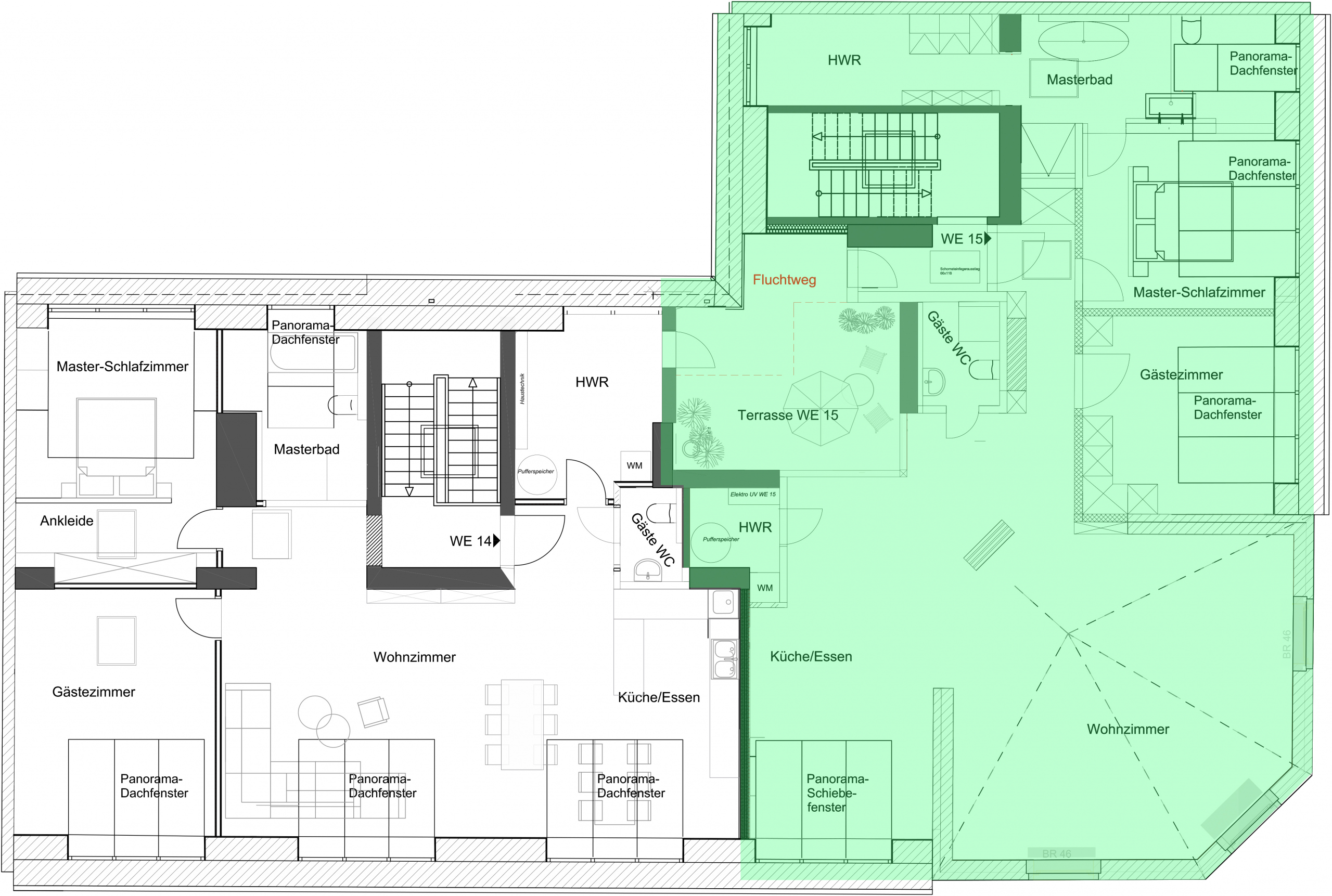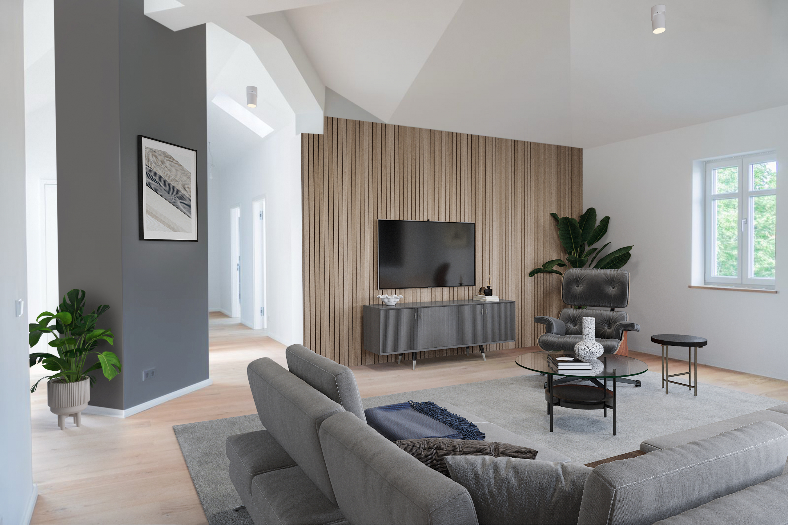 Diese exklusive Penthouse-Wohnung im Dachgeschoss (4. OG) eines historischen Altbaus von 1912 wurde 2024 fertiggestellt und vereint modernen Luxus mit dem Charme eines historischen Altbaus. Das Eckgebäude befindet sich an einer ruhigen Kreuzung und bietet einen offenen und unverbaubaren Blick auf einen benachbarten Spielplatz, der zur Erholung einlädt.