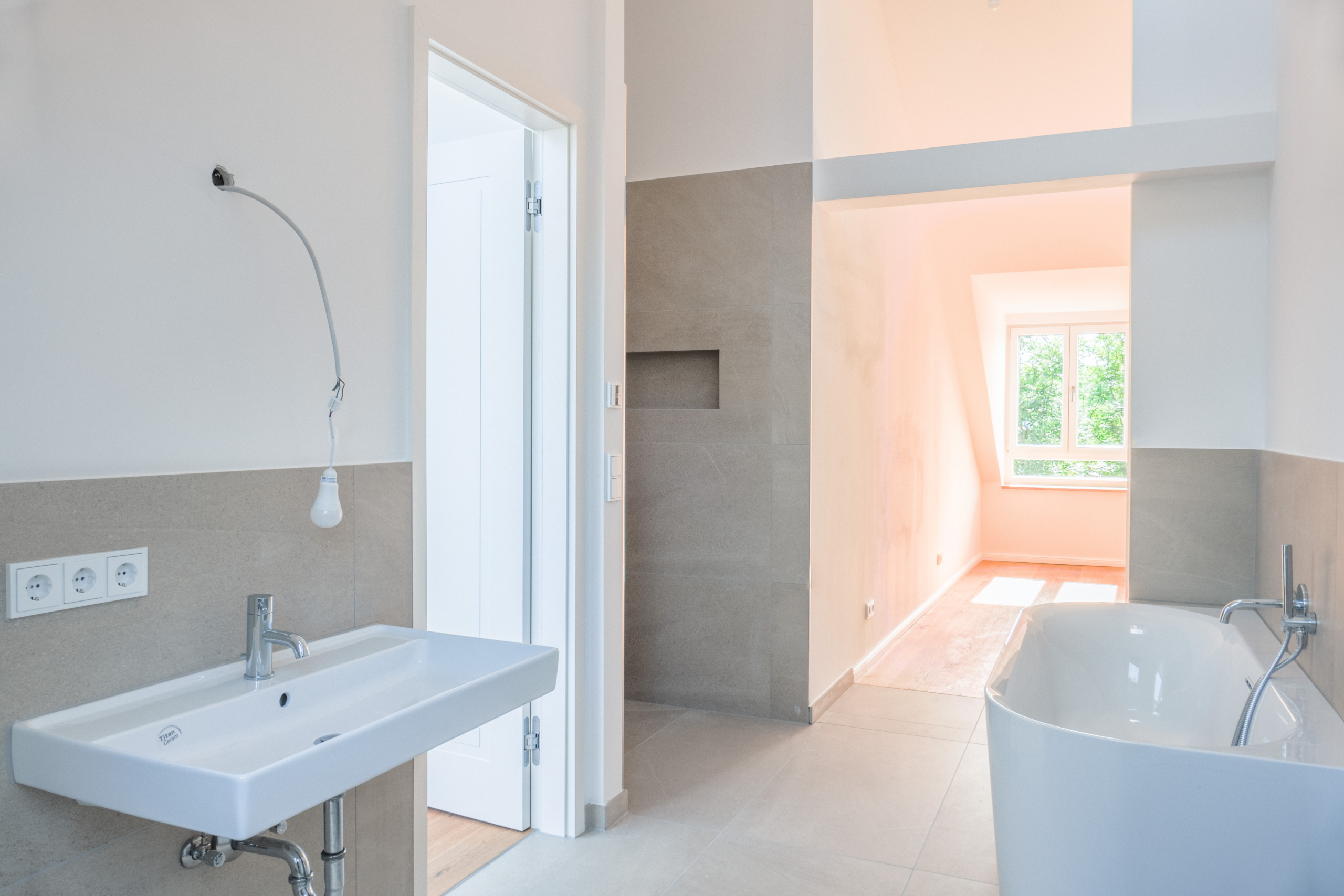 - Bodenbeläge: Hochwertiges Parkett und großformatige Fliesen in den Bädern
