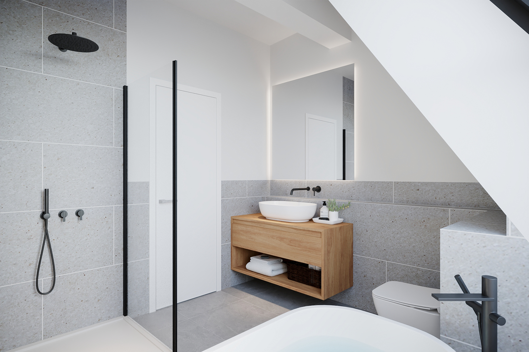 Technologisch bleibt kein Wunsch offen: Fußbodenheizung, Fernwärme, energieeffiziente Haustechnik – alles durchdacht, alles auf dem neuesten Stand, ohne sich in den Vordergrund zu drängen.