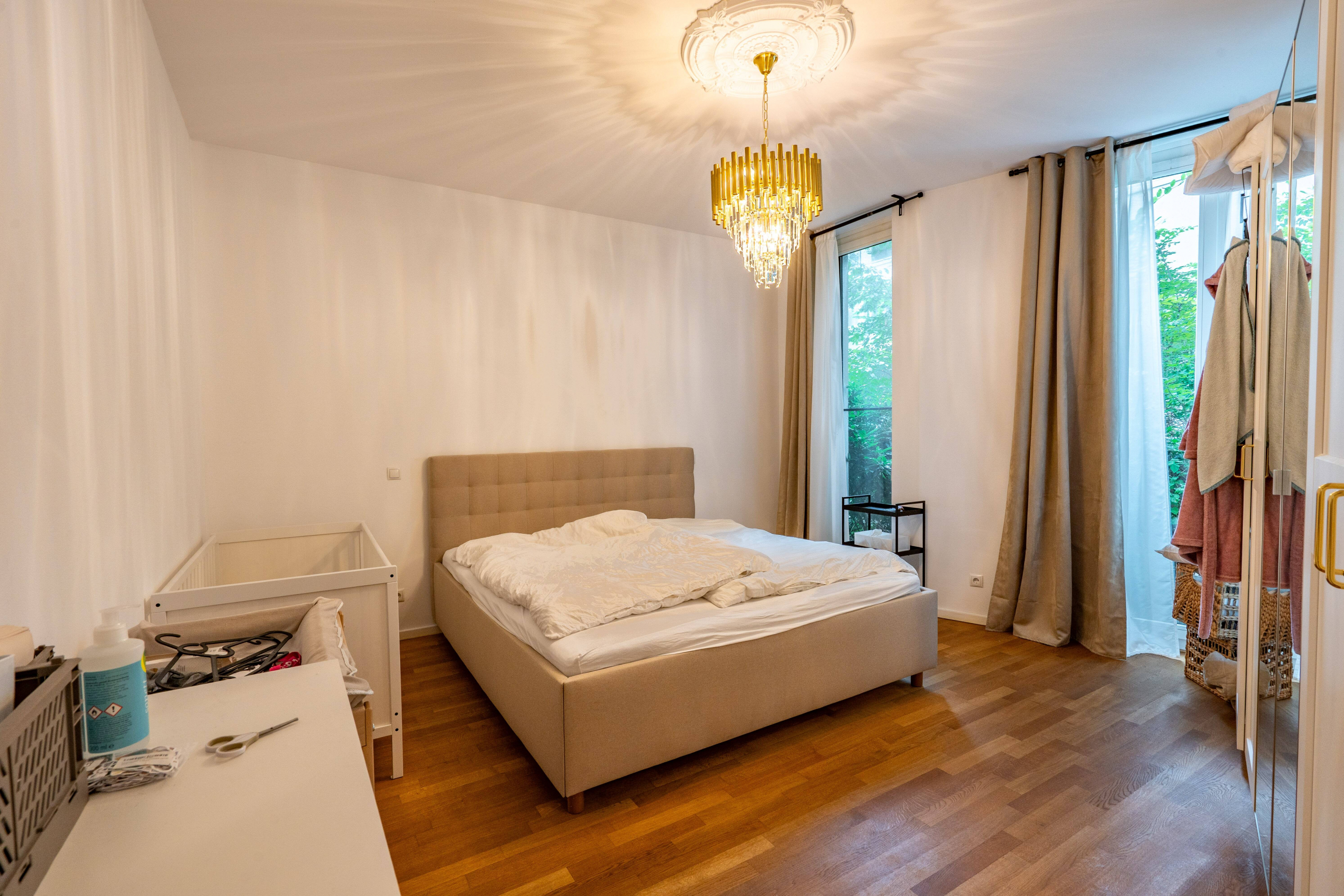 Die Wohnung liegt im ruhigsten Teil des Ensembles, im Gartenhaus – und bietet damit das Beste aus zwei Welten: absolute Innenstadtlage und einen Rückzugsort mit fast dörflicher Anmutung. Eine große Süd-Ost-Terrasse erweitert den Wohnraum ins Freie, ideal für den Morgenkaffee in der Sonne oder entspannte Stunden mit Freunden.